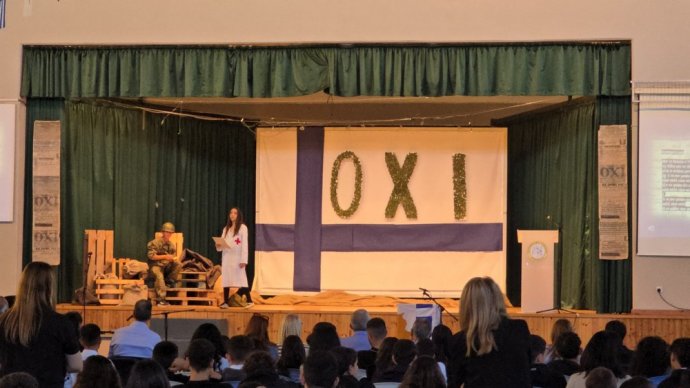 28η Οκτωβρίου – Τελετή Παράδοσης και Παραλαβής Σημαιών Στο Περιφερειακό Γυμνάσιο Ξυλοφάγου πραγματοποιήθηκε η τελετή παράδοσης και παραλαβής των σημαιών, μέσα σε κλίμα συγκίνησης, υπερηφάνειας και σεβασμού προς την ιστορία της πατρίδας μας. Το άγημα του σχολείου στάθηκε με ευπρέπεια και τιμή, συνοδεύοντας τη στιγμή που οι νέοι σημαιοφόροι και παραστάτες ανέλαβαν τα καθήκοντά τους, συνεχίζοντας μια παράδοση που τιμά την αριστεία και το ήθος. Αύριο, στην παρέλαση για την 28η Οκτωβρίου, το σχολείο μας θα δώσει για ακόμη μία φορά το παρών, αποδίδοντας φόρο τιμής στους ήρωες του ’40. |