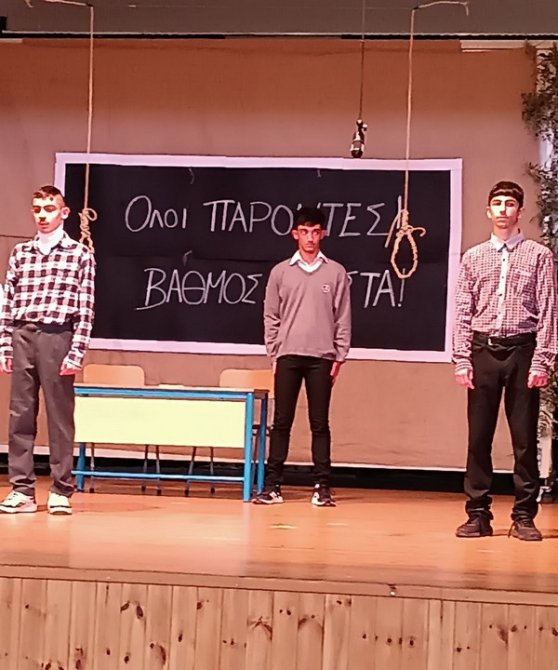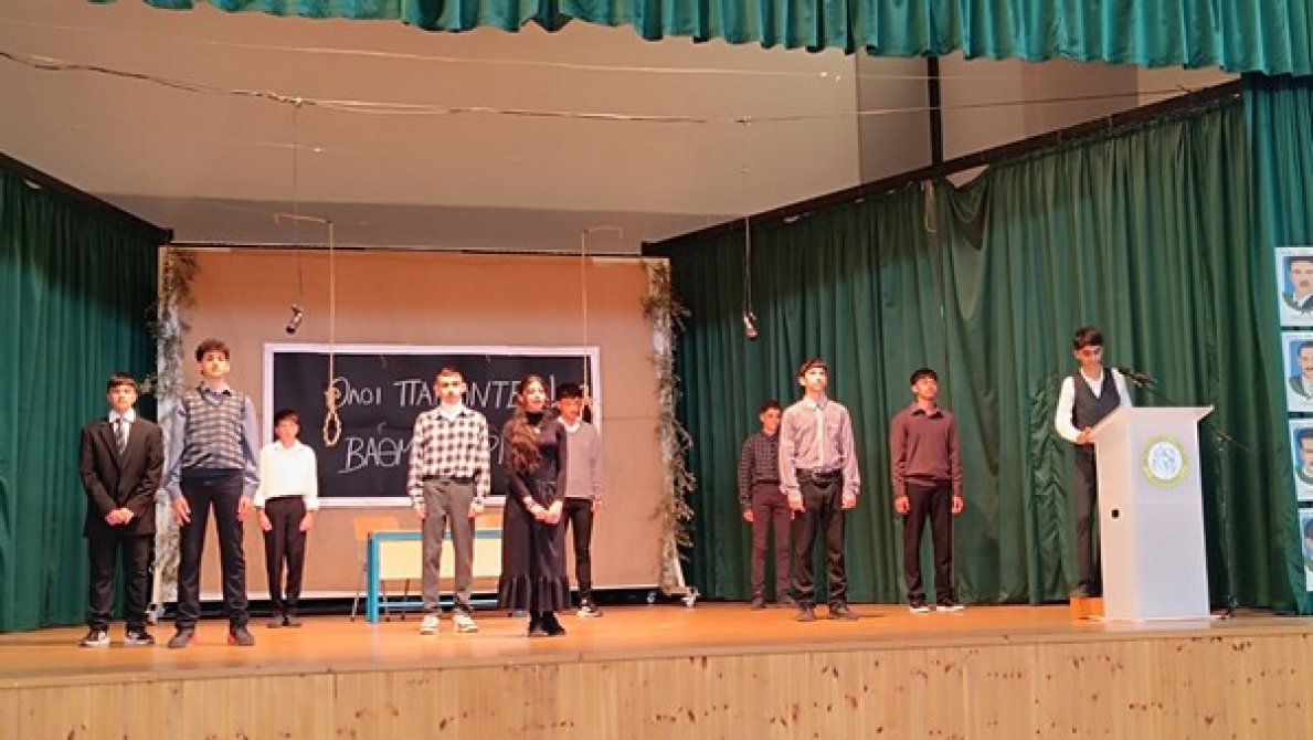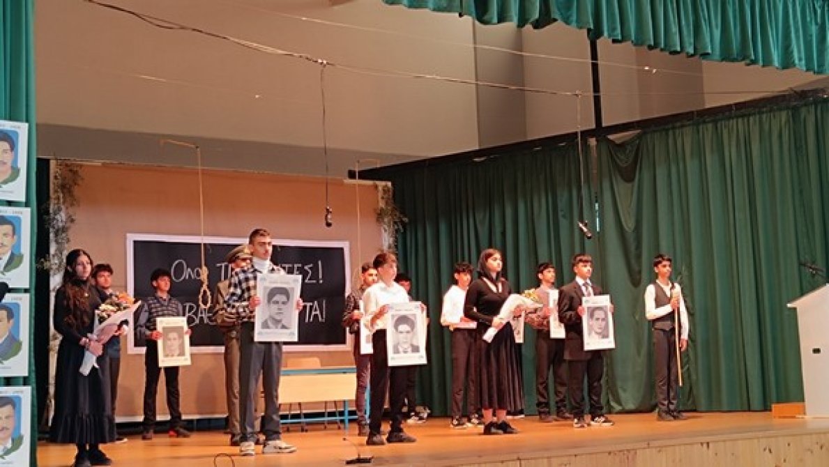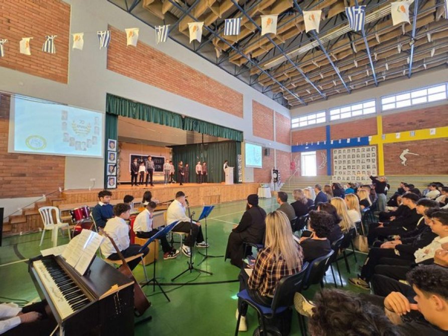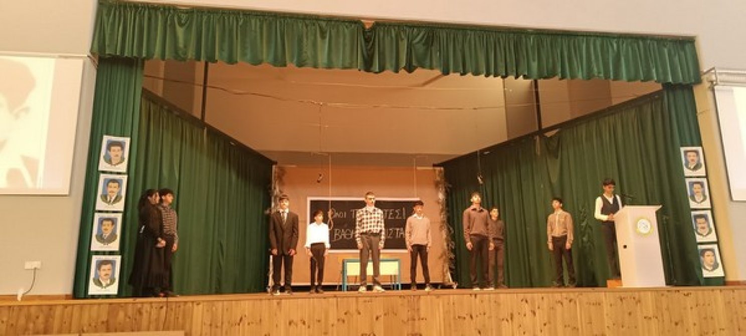 1η Απριλίου 1955 70 χρόνια συμπληρώνονται από τη μέρα που άρχισε ο μεγαλειώδης αγώνας των Κυπρίων για απελευθέρωση από τη Βρετανική Αυτοκρατορία. Οι Έλληνες της Κύπρου πίνοντας το κρασί των αθανάτων γέμισαν με χρυσά γράμματα την Ιστορία. Με τιμή και ιδιαίτερη συγκίνηση πραγματοποιήθηκε σήμερα ενδοσχολικός εορτασμός για την εθνική επέτειο του απελευθερωτικού αγώνα 1955-59. Πολλά συγχαρητήρια στα παιδιά που συμμετείχαν και στους/στις καθηγητές/τριες για τη διοργάνωση της γιορτής. |