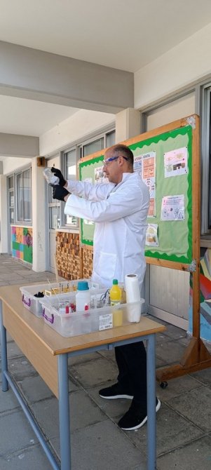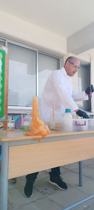 Quiz Χημείας επίσης σήμερα από τους καθηγητές Χημείας του σχολείου μας, κ. Τασούλα Δημητρίου και κ. Αθανάσιο Τσεκούρα, με εντυπωσιακά πειράματα και ερωτήματα που τέθηκαν για την πειραματική διαδικασία. Οι μαθητές απαντούσαν και συμμετείχαν με ενθουσιασμό. Για κάθε ορθή απάντηση το βραβείο ήταν πολύ γλυκό! Μια σοκολάτα επιλογής δικής τους!