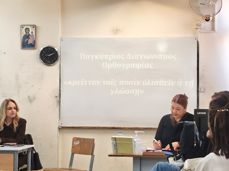 Με ιδιαίτερη υπερηφάνεια, οι μαθήτριες Μαρία Μαγδαληνή Βιολάρη (Γ2) και Γεωργία Κουτσόφτα (Γ5) εκπροσώπησαν επάξια το σχολείο μας στην επαρχιακή φάση του Α΄ Παγκύπριου Διαγωνισμού Ορθογραφίας με τίτλο «κρεῖττον τοῖς ποσίν ὀλισθεῖν ἢ τῇ γλώσσῃ».
