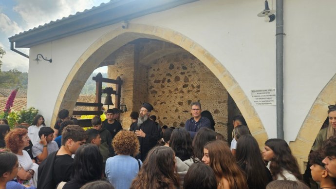 Η Β’ τάξη επισκέφθηκε την Ιερά Μονή Αγίας Θέκλας στη Μοσφιλωτή, απολαμβάνοντας τη γαλήνη και την ομορφιά του χώρου, ενώ ακολούθησε γεύμα στο Cosmopolis στον Κόρνο.