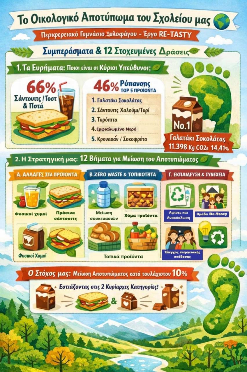 Η περιβαλλοντική ομάδα των μαθητών του Σχολείου μας, με την πολύτιμη καθοδήγηση της καθηγήτριας Βιολογίας κας Ιφιγένειας Αντωνίου, συμμετείχε κατά τη φετινή σχολική χρονιά στο ευρωπαϊκό πρόγραμμα ReTasty.nl, το οποίο αποσκοπεί στην καλλιέργεια υγιεινών, ισορροπημένων και βιώσιμων διατροφικών συνηθειών, καθώς και στη συνειδητή μείωση της σπατάλης τροφίμων.