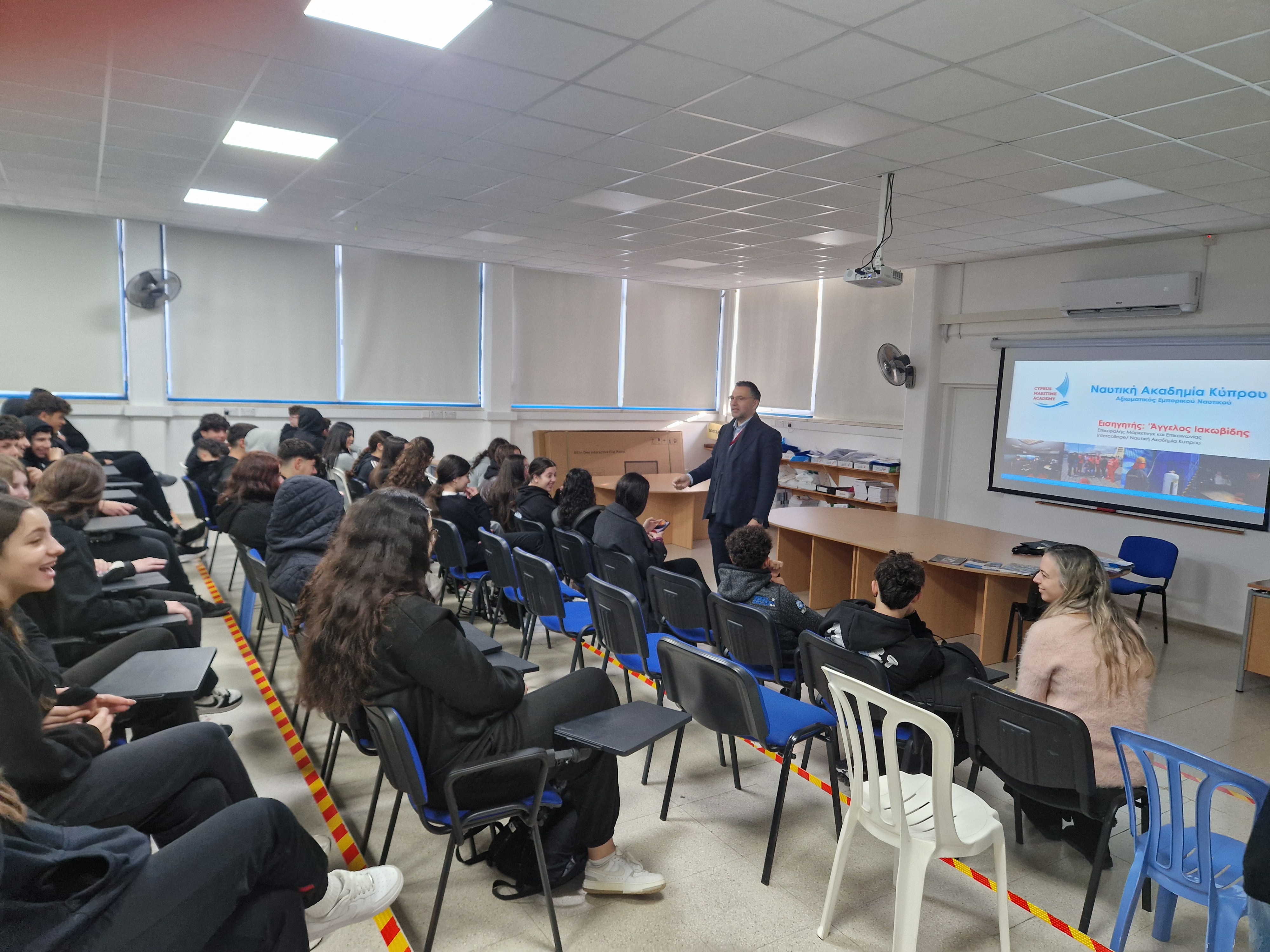29/01/2026 - Οι μαθητές και οι μαθήτριές της Γ' τάξης παρακολούθησαν ενημερωτική διάλεξη για τα επαγγέλματα των Επισιτιστικών Τεχνών, της Αισθητικής, της Ναυτικής Επιστήμης και των Τεχνικών επαγγελμάτων, από τον κ Άγγελο Ιακωβίδη.