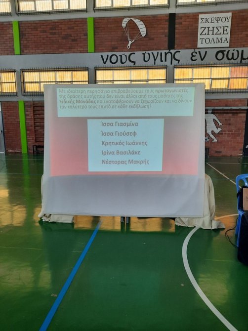 And the oscar goes to...!! Με άρωμα Χόλιγουντ πραγματοποιήθηκε σήμερα στην αίθουσα πολλαπλής χρήσης " Μάριος Φραγκούς" η τελετή επιβράβευσης των διακριθέντων μαθητών σε διαγωνισμούς και αθλητικές δραστηριότητες κατά τη διάρκεια της φετινής σχολικής χρονιάς! Την βράβευση των μαθητών ακολούθησε η βράβευση καθηγητών με την απονομή βραβείου Αστυνόμου Σαΐνη, βραβείου "Η συτζια του μαύρου", βραβείου " Αγίας Υπομονής", "Ο πασάς και τα χανουμάκια του", του βραβείου της καρκιάς, της καλύττερης του χωριού, του βραβείου " Όλα τα λεφτά" και αρκετών άλλων. Θερμές ευχαριστίες στην εταιρία S.Y. STAGE LTD EVENT EQUIPMENT για τη συνδρομή της στη διοργάνωση της τελετής. Ιδιαίτερες ευχαριστίες και υπόκλιση στην ευρηματικότητα, ευστροφία και χολιγουντιανή λάμψη των καθηγητριών κ. Έλενας Βαρνάβα και κ. Ιφιγένειας Αντωνίου που διοργάνωσαν με πολλή αγάπη την τελετή επιβράβευσης |