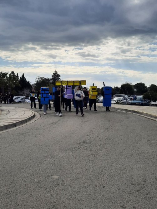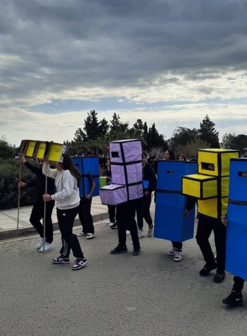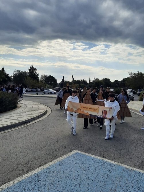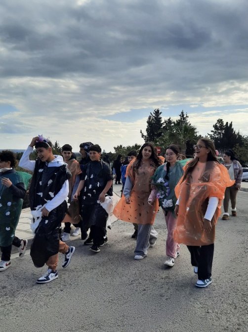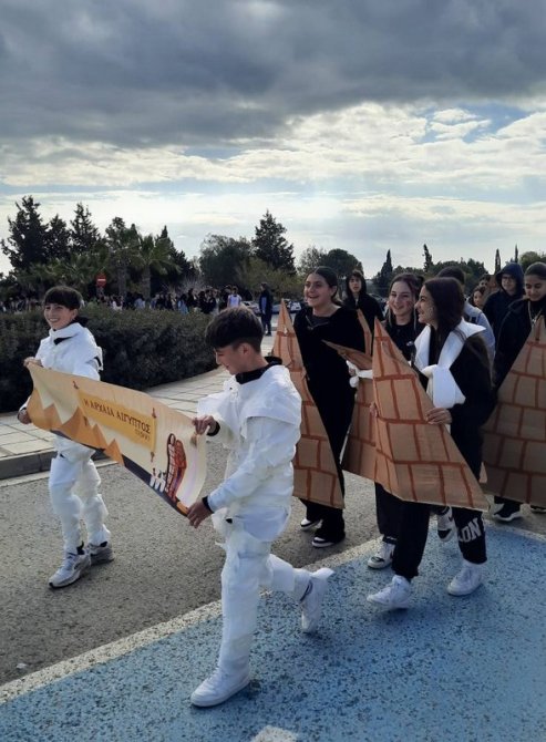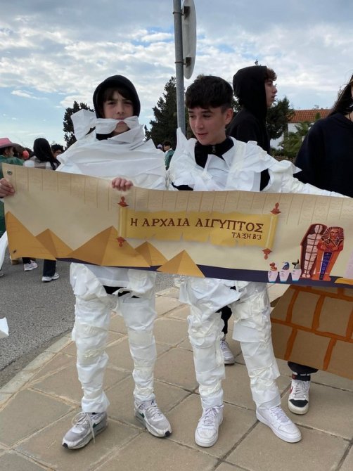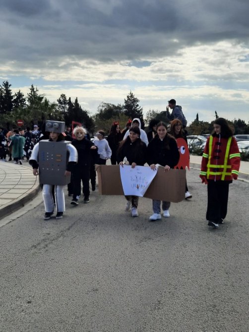Οι μαθητές μας μαζί με τους/τις καθηγητές/τριες τους παρέλασαν ενώπιον κριτικής επιτροπής ανά τμήματα, έπαιξαν παιχνίδια και έφαγαν σουβλάκια που ετοίμασε για αυτούς ο Σύνδεσμος Γονέων και Κηδεμόνων, τον οποίο ευχαριστούμε θερμά. Το 1ο βραβείο του καρναβαλιού κατέκτησε το τμήμα Α2 με τίτλο ενδυμασίας "Κανείς δεν ταιριάζει μόνος του". Τη δεύτερη θέση κατέλαβε το τμήμα Β3 για την "Αίγυπτο" και η 3η θέση απονεμήθηκε εξίσου στο Β1 για την ενδυμασία " Τέσσερις εποχές" και Γ3 για την "Οδική ασφάλεια". Ατομικό βραβείο ενδυμασίας κατέκτησε ο Ανδριανός Φιακουρίδης του Α5! Συγχαρητήρια σε όλα τα παιδιά και τους υπεύθυνους τμημάτων για τις ευφάνταστες και δημιουργικές ενδυμασίες που παρουσίασαν με βάση τις οδηγίες για χρήση μόνο ανακυκλώσιμων υλικών. |