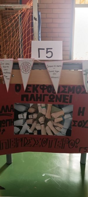 Τελικό Πανηγυράκι του προγράμματος «Στεκόμαστε μαζί». Πραγματοποιήθηκε σήμερα στην αίθουσα πολλαπλής χρήσης του σχολείου μας, "Μάριος Φραγκούς", το πανηγύρι του προγράμματος "Στεκόμαστε μαζί", στο οποίο παρουσιάστηκαν οι τελικές δράσεις όλων των τμημάτων και αποδόθηκαν πιστοποιητικά συμμετοχής. Το Πρόγραμμα Πρόληψης με τίτλο «Στεκόμαστε Μαζί Ενάντια στον Σχολικό Εκφοβισμό - ViSC» , το οποίο εφαρμόζεται υπό την αιγίδα του Υπουργείου Παιδείας, Αθλητισμού και Νεολαίας και την υποστήριξη του Οργανισμού Νεολαίας Κύπρου, διεξήχθη στο σχολείο μας σε τρεις φάσεις με τη σημερινή τελική να αποτελεί ένα μεγάλο πανηγύρι επιβράβευσης για την ολοκλήρωσή του. |
